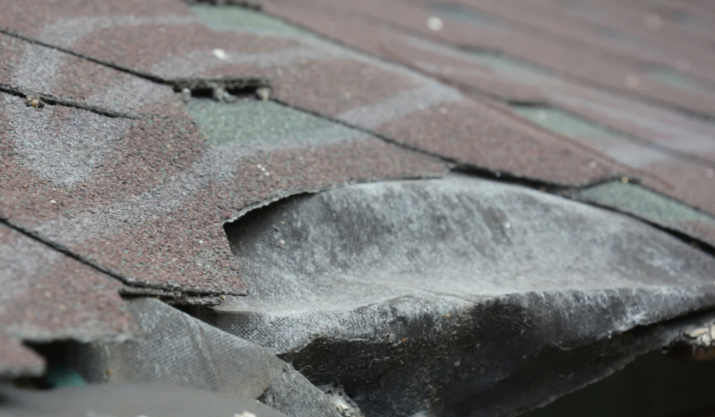 - Granule loss leaving the asphalt layer exposed